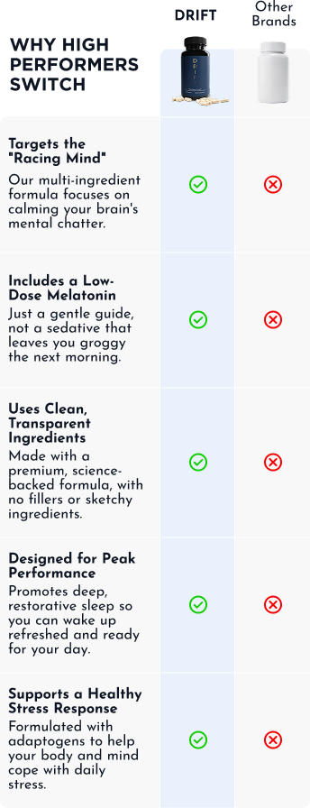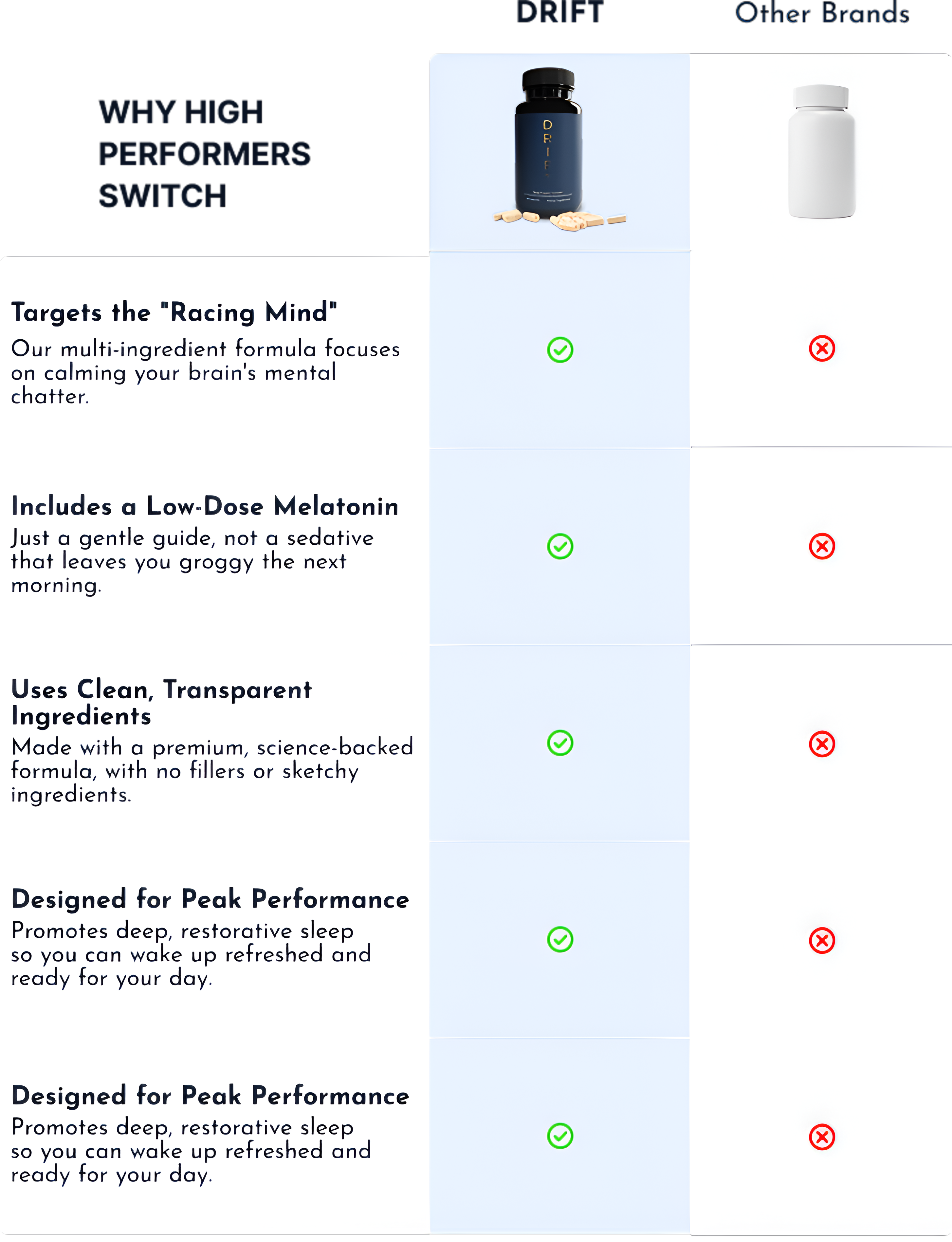 We're so confident in our formula that we assume all the risk. Try DRIFT for 30 nights. If you don't feel a noticeable difference in your sleep quality and your morning energy, we will refund you 100%. No questions asked.